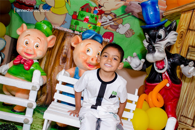 João Marcelo comemorou seus 4 aninhos com os Três Porquinhos e o Lobo Mau!